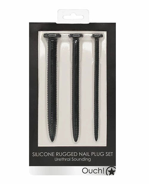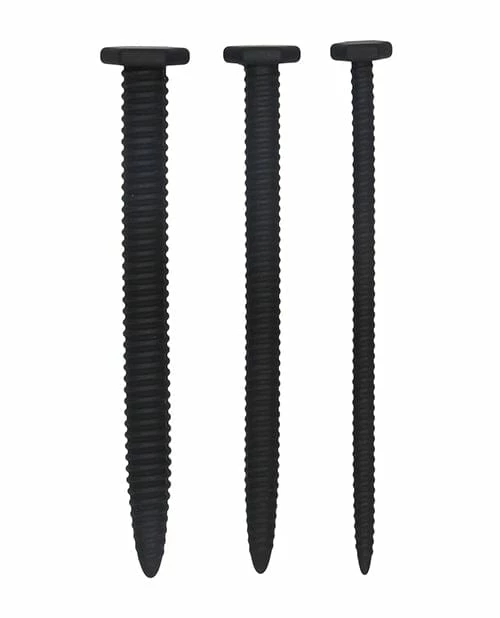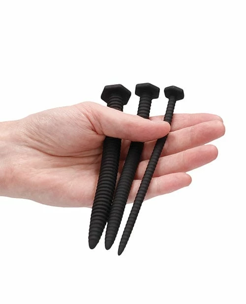Shots America Kink & BDSM Shots Ouch Urethral Sounding Silicone Screw Plug Set – Black