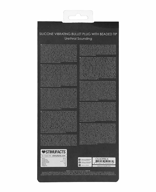 Shots America Kink & BDSM Shots Ouch Urethral Sounding Silicone Vibrating Bullet Plug With Beaded Tip – Black