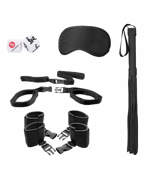 The Bed post-restraint kit is perfect for those couples looking to explore bondage in the bedroom. Easily attaches to your bed posts for securing your lover. The kit has everything you need to start getting your kink on. Contains 2 wrist restraints, 2 ankle restraints, 4 bedpost extensions, and you get a FREE leather flogger, satin mask and sex dice as a special bonus.