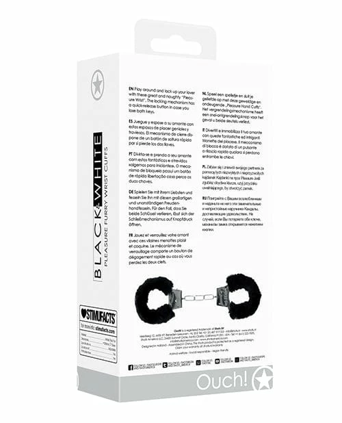Shots America Shots Ouch Black & White Beginner’s Furry Hand Cuffs – Black Kink & BDSM