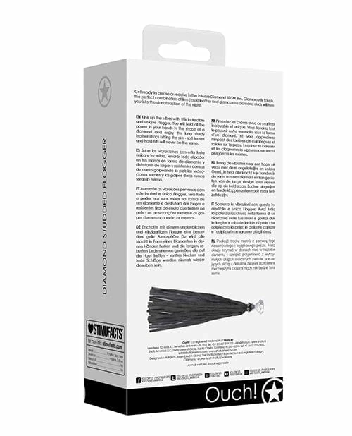 Get ready to please or receive in the intense Diamond BDSM line. Glamorously tough, the perfect combination of firm (faux) leather and glamourous diamond studs will turn you into the star attraction of the night. Kink up the vibes with this incredible and unique Flogger. You will hold all the power in your hands in the shape of a diamond and enjoy the long sturdy leather straps hitting the skin – soft teases and hard hits will never be the same. The perfect addition to a very hot kind of trouble? it is time to set your dark side free.