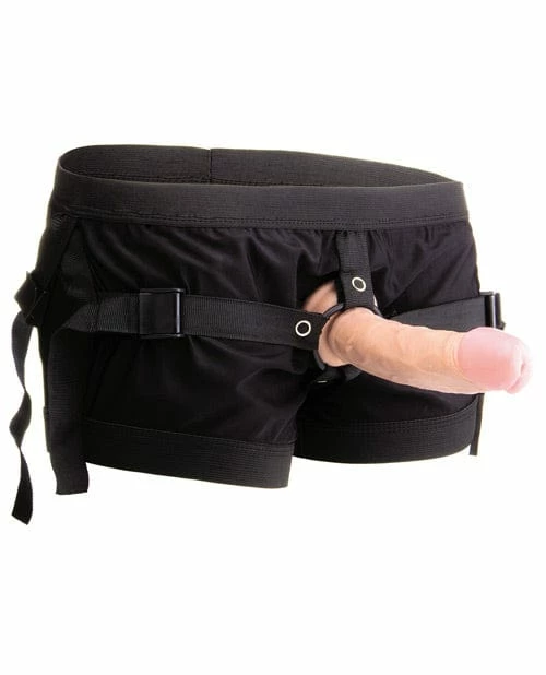 Attach one of the REALROCK vibrating or non-vibrating dong to this boxer with harness to penetrate deeply into your partners body. The boxer with harness is made for every dong up to ? 50 mm. The straps are adjustable and make sure the attached cock will stay in place. Specifications: – Elastic straps fits size: S to XL / USA Size: 6 to 12 / UK Size: 10 to 16. Compatible with every dong up to 2 inch diameter. Boxer is made from 82% polyester, 18% spandex for that comfortable but tight Fit. From Shots America.