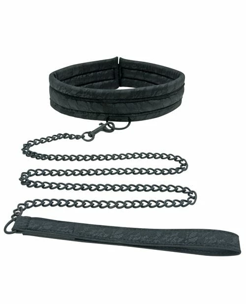 The comfortable padded collar, made of soft, inviting fabric of fine lace, fits perfectly around most any size neck. Linked leash serves as a constant reminder of who is running your fantasy.