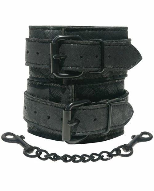 Restraint can be a luxurious experience. Feel the gentle caress of the soft and Inviting fabric of fine lace as they secure around your wrists. These sexy cuffs come with black metal buckles and a strong black metal chain with 2 clasps.