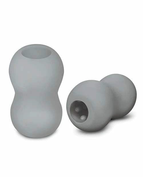 The ZOLO Gray Mini Double Bubble Squeezable & Textured Stroker is a versatile mini male stroker perfect for solo play or foreplay with a partner. Slide into the smooth or textured side of the sleeve and enjoy the intense sensations. Use it during oral sex for added pleasure. Or add excitement to intercourse by wearing it as a bumper to stop penetrating fully. Includes renewing powder to help keep your stroker dry, clean and always ready for action! One Year Warranty.