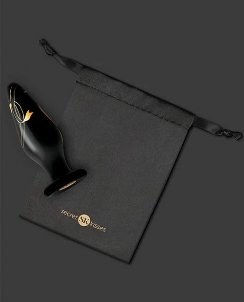 Secret Kisses 4.5″ Handblown Wide Glass Plug – Black/gold