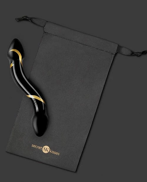 Secret Kisses 7.5″ Handblown Double Ended Dildo – Black/gold
