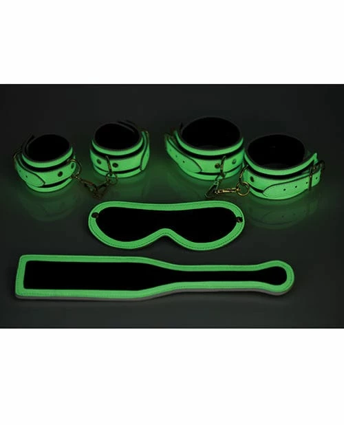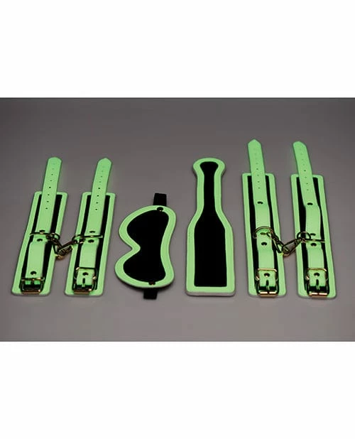 Master Series Kink in the Dark Glowing Cuffs & Blindfold & Paddle Set