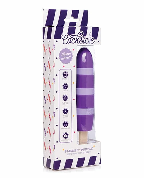 Pop in a treat! Fulfill your sweet cravings with this powerful popsicle shaped vibe with a fun design! Experience 3 speeds and 7 patterns of vibration, internally or externally! This rechargeable vibrator is splash-proof, so that you can get a little wet on a hot day. This popsicle doesn’t drip… but you will! Made of premium silicone, Cocksicles are non-porous and phthalate-free for body-friendly fun. Clean after use with mild soap or toy cleaner. Avoid use with silicone lubricants to preserve the material.