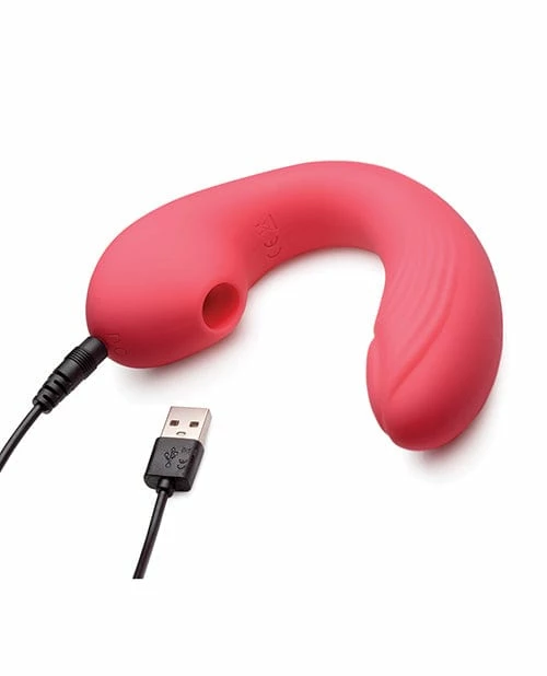 Explore your desires and level up your masturbation game with this pulsing, vibrating air-stim vibe! The flexible shaft allows you to grind against the toy and find the perfect position as you cycle through 7 different pulsing and vibration modes that get right to your G-spot inside and 7 air-stim sucking modes that stimulate the clitoris.